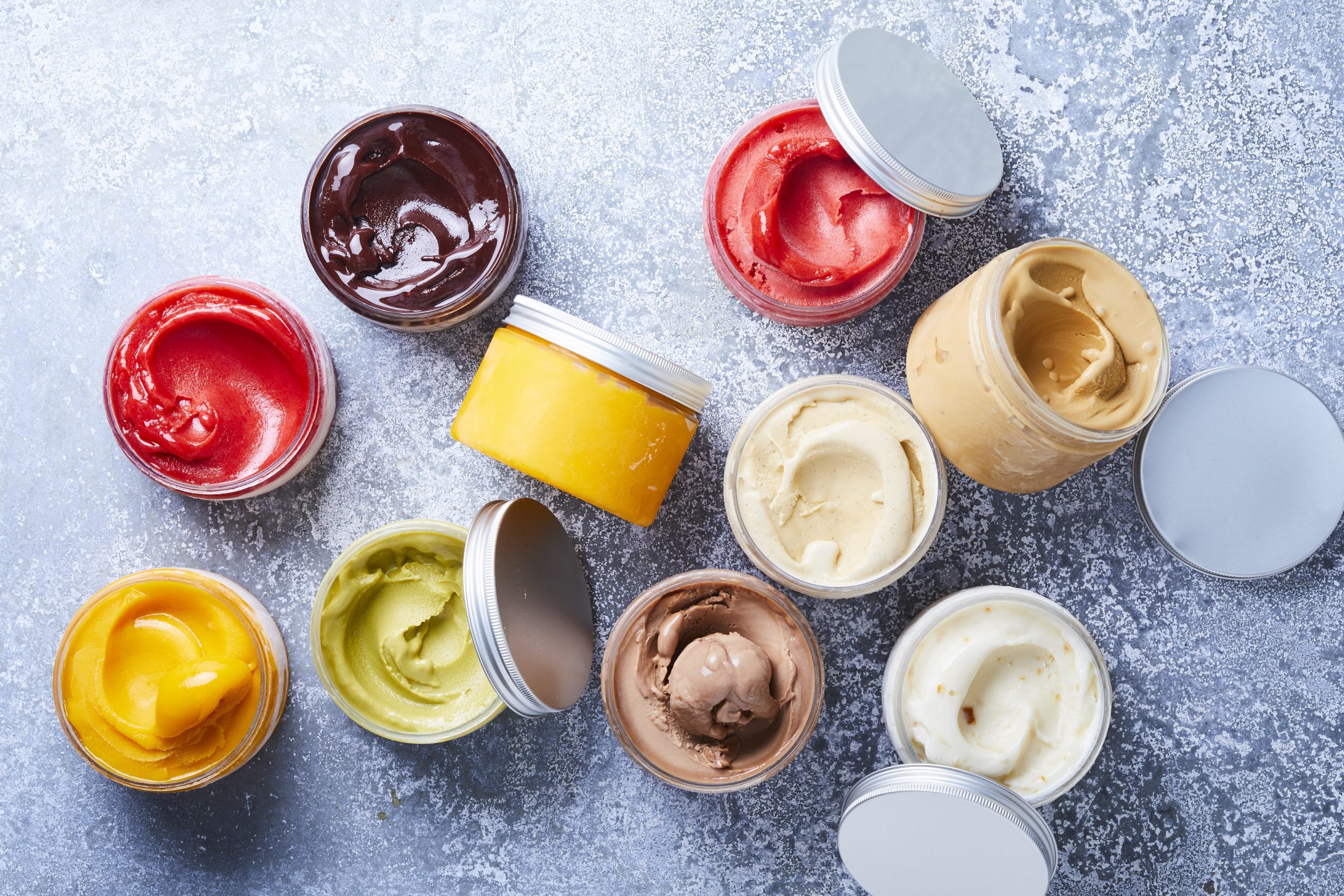 C’est une glace faite comme un sorbet. Les appellations sont compliquées ! Une crème glacée a de la crème mais pas d’œufs. Une glace « aux œufs » a des œufs mais pas de crème. Du coup mes produits ne rentrent dans aucune case, puisque je mets des œufs et de la crème ! Dans le cadre du glorbet c’est encore plus compliqué. Pas de jaune d’œufs ni de crème et pourtant du lait donc pas un sorbet. Je déteste ceux qui mettent du lait dans les sorbets (autorisé par la loi en petit quantité), d’où l’invention du glorbet. On peut dire que c’est un sorbet au yaourt mais avec du lait au lieu de l’eau du sirop ! Et les déclinaisons sont infinies : yaourt au yuzu, yaourt au cassis, caviar, saumon, martini tonic, etc….