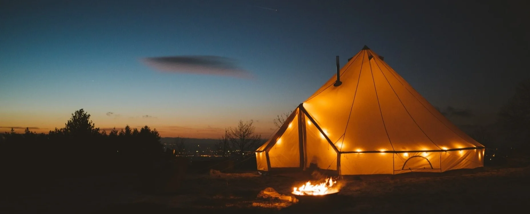 Vient le moment du montage des tentes, afin d’organiser son lit douillet avant de penser au dîner, à la nuit tombée. Bientôt, l’obscurité compliquera tout mouvement ou déplacement. Le feu crépite et l’on s’affaire en cuisine, les lumières sont douces sur le camp, tout le monde se presse dans le chapiteau où « l’esthétique est soignée », comme l’indique le fondateur. Il explique avoir souhaité créer une « ambiance particulière » pour ce bivouak qui constitue une virgule dans le quotidien de ses clients.. Le service est haut de gamme, attentif et souriant, sympathique et cordial, rien n’est laissé au hasard. La journée a été longue, le temps des festivités et de la détente est arrivé.