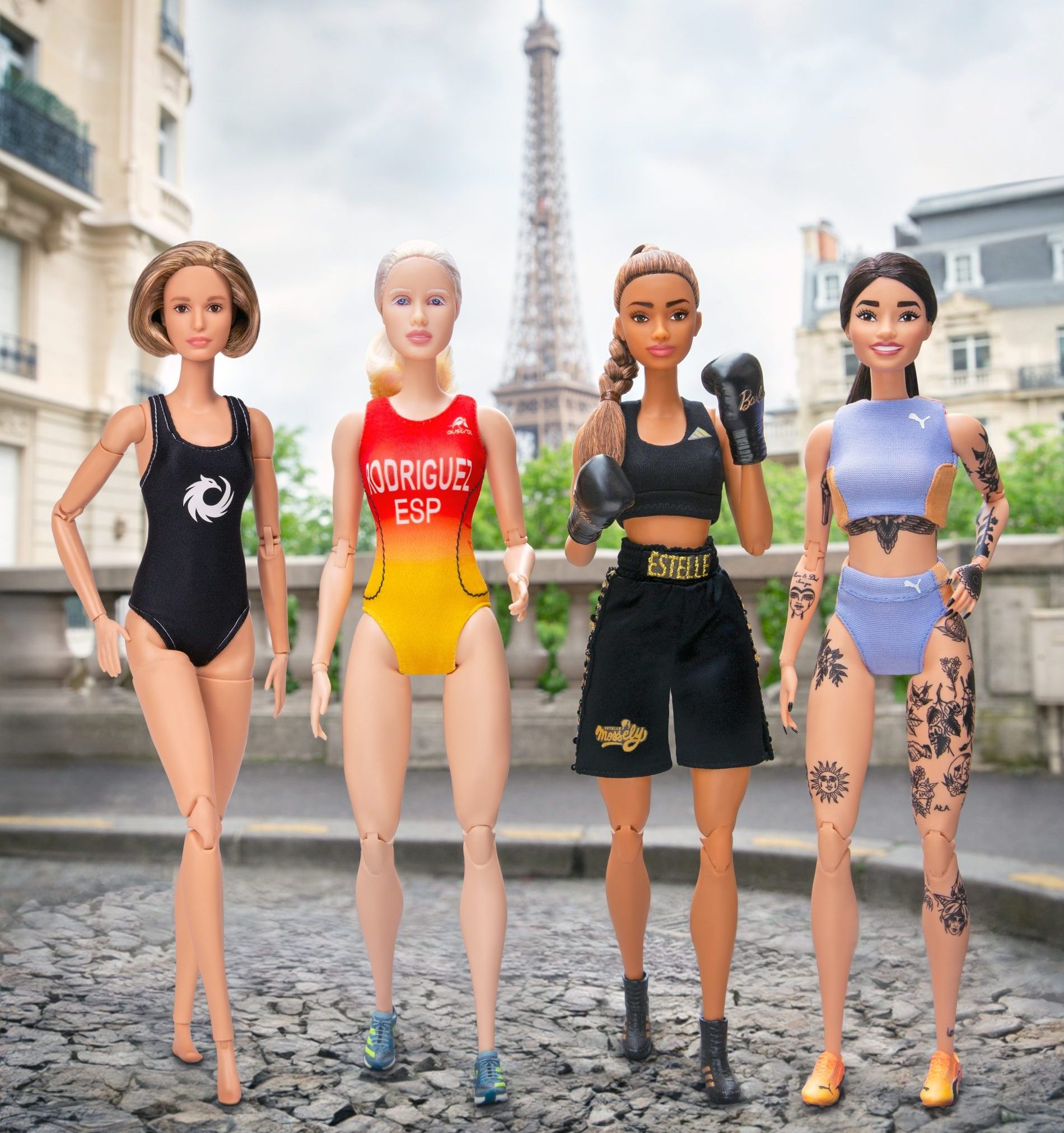 La poupée qui retient particulièrement notre attention, c’est celle d’Estelle Mossely, la fameuse boxeuse française qui combat en poids léger. C’est l’athlète qui représente la France dans cette collection de poupées Barbie.
