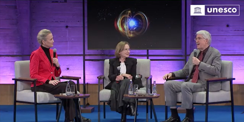 Une autre réflexion, au cours de cette cérémonie d’ouverture, a été menée sur la présence des femmes dans les domaines scientifiques. Aujourd’hui, selon une étude réalisée par l’ISU (Institut de statistique de l’Unesco), moins de 30 % des chercheurs sont des femmes. D’autres données ont démontré que les femmes publient moins, qu’elles sont moins bien payées pour leurs recherches et que leurs carrières progressent moins vite que celles des hommes. À ce sujet, Anne L’Huillier qui a remporté le prix Nobel de Physique en 2023, témoignait au micro de France Inter : « Il y a beaucoup de stéréotypes. Peut-être que les jeunes filles se disent non, on ne peut pas faire de la science parce qu’il y a très peu de femmes. Moi, je veux lutter contre ce stéréotype. »