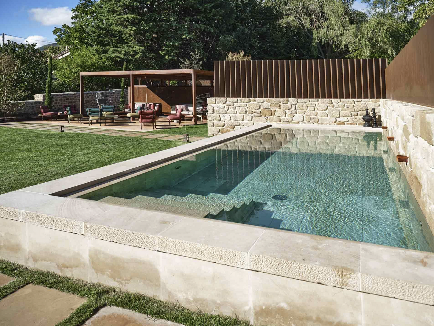Le Palacio, à quelques kilomètres des vignobles et de la bodega, se dévoile comme un refuge intimiste, où chaque pierre tricentenaire, chaque œuvre d’art et chaque objet racontent une histoire. Les vases en verre de Murano dialoguent avec des céramiques contemporaines, les gouaches d’Albert Chubac côtoient les dessins abstraits de Dominique Pouchain et les sculptures cinétiques de Michel Devern se répondent aux créations en papier compressé de René Galassi. Tout ici respire la créativité et la délicatesse.