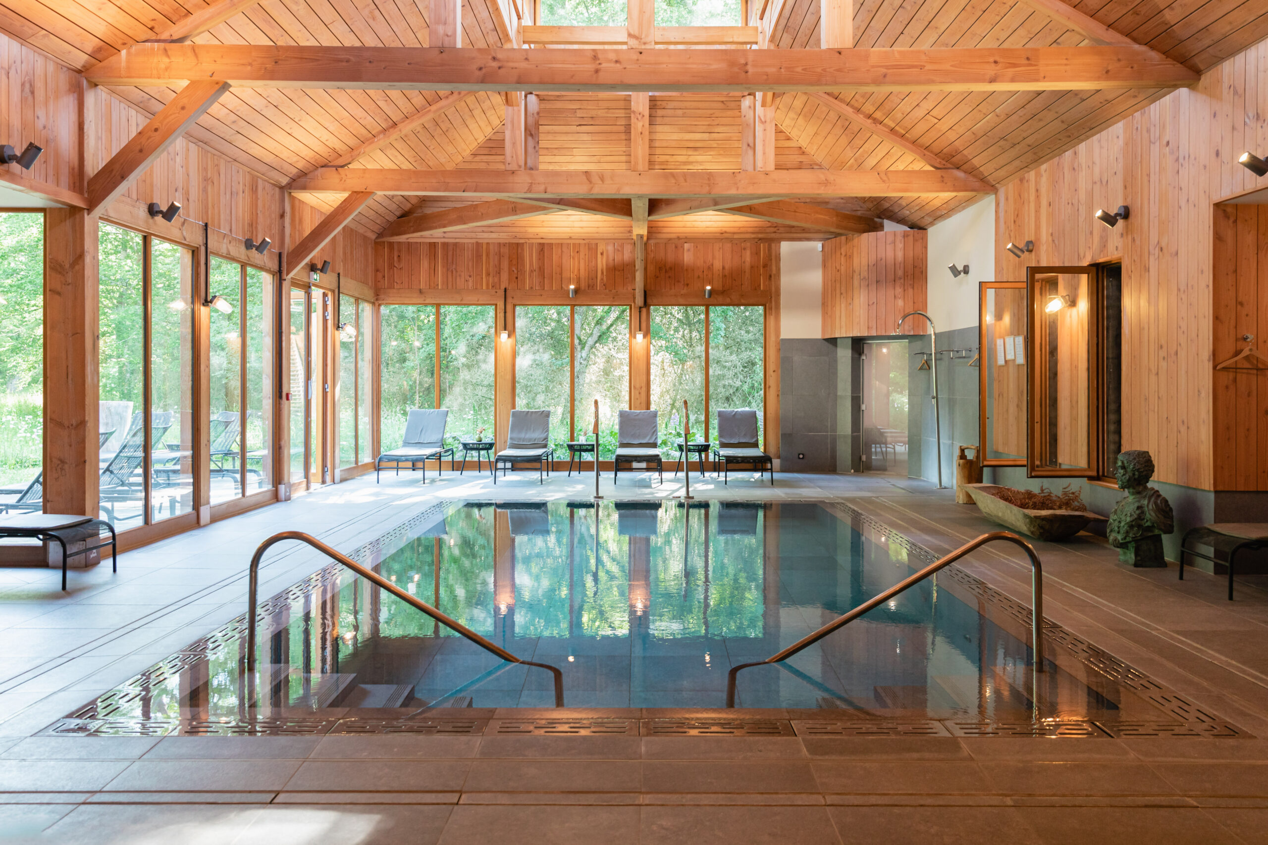 À quelques pas seulement du bruissement végétal de la forêt, le Spa Caudalie des Sources de Cheverny déploie une autre idée du bien-être : non pas une parenthèse décorative, mais une immersion lente dans un univers où la nature devient matière thérapeutique. Sous une charpente de bois lumineuse, ouverte sur le paysage comme un tableau vivant, l’espace principal impose immédiatement une sensation rare : celle d’être à la fois abrité et totalement relié à l’extérieur. Au centre de cette architecture, un bassin de relaxation et un hammam prolongent cette impression de flottement maîtrisé, presque hors du temps. Le corps s’y délasse, mais c’est surtout le rythme intérieur qui se reconfigure.